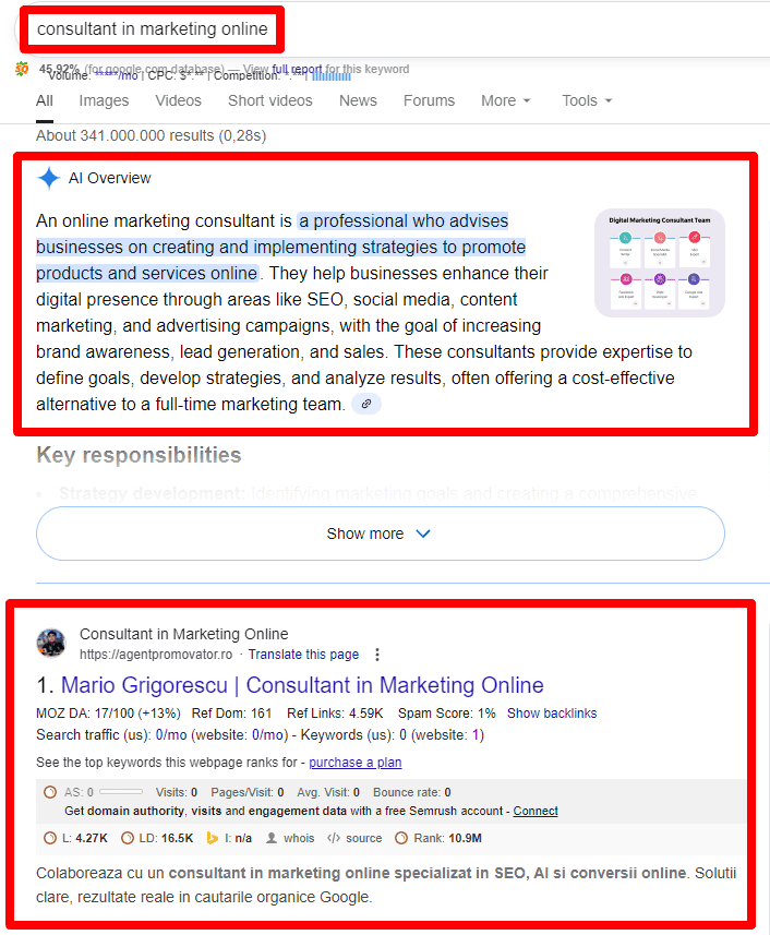 Daca vrei rezultate reale in ai search si vizibilitate organica mai mare cu ajutorul unei strategii seo corecte, poti programa gratuit o sesiune de 30 de minute cu Mario Grigorescu, lider in cautarile organice Google ca si consultant in marketing online.
